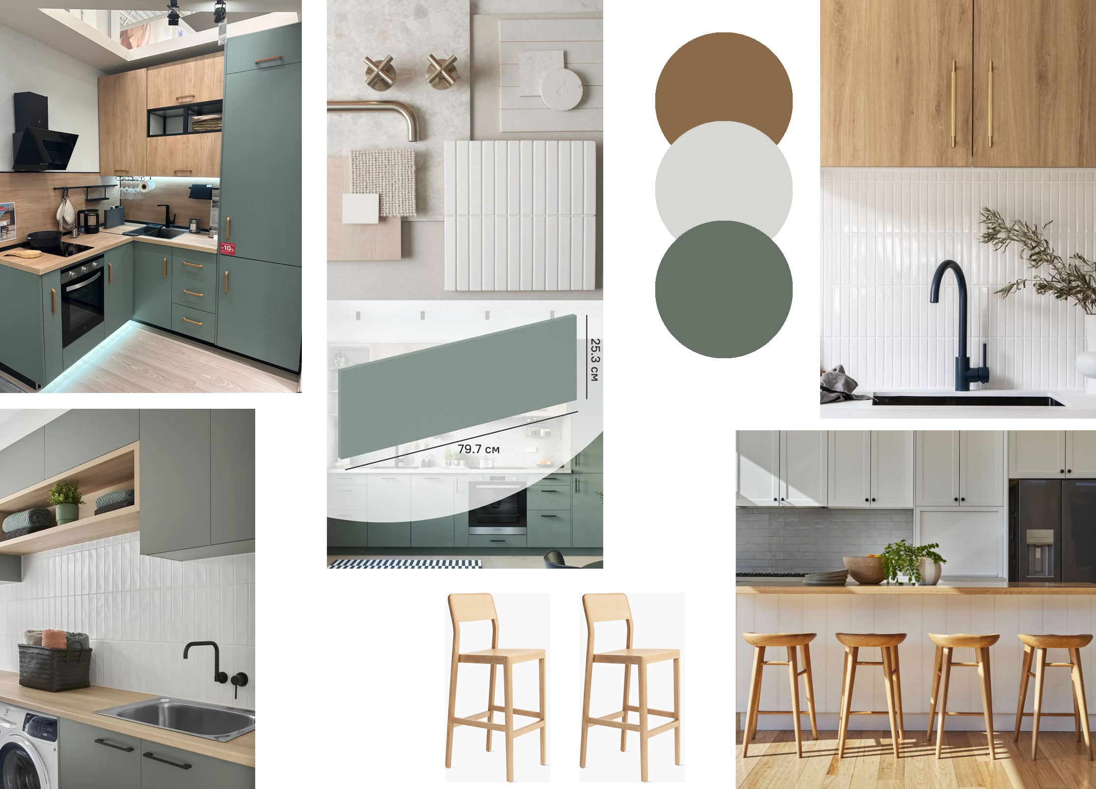 Вы получаете коллажи с подобранными материалами и стилистикой вашей квартиры, а так же планировочное решение.